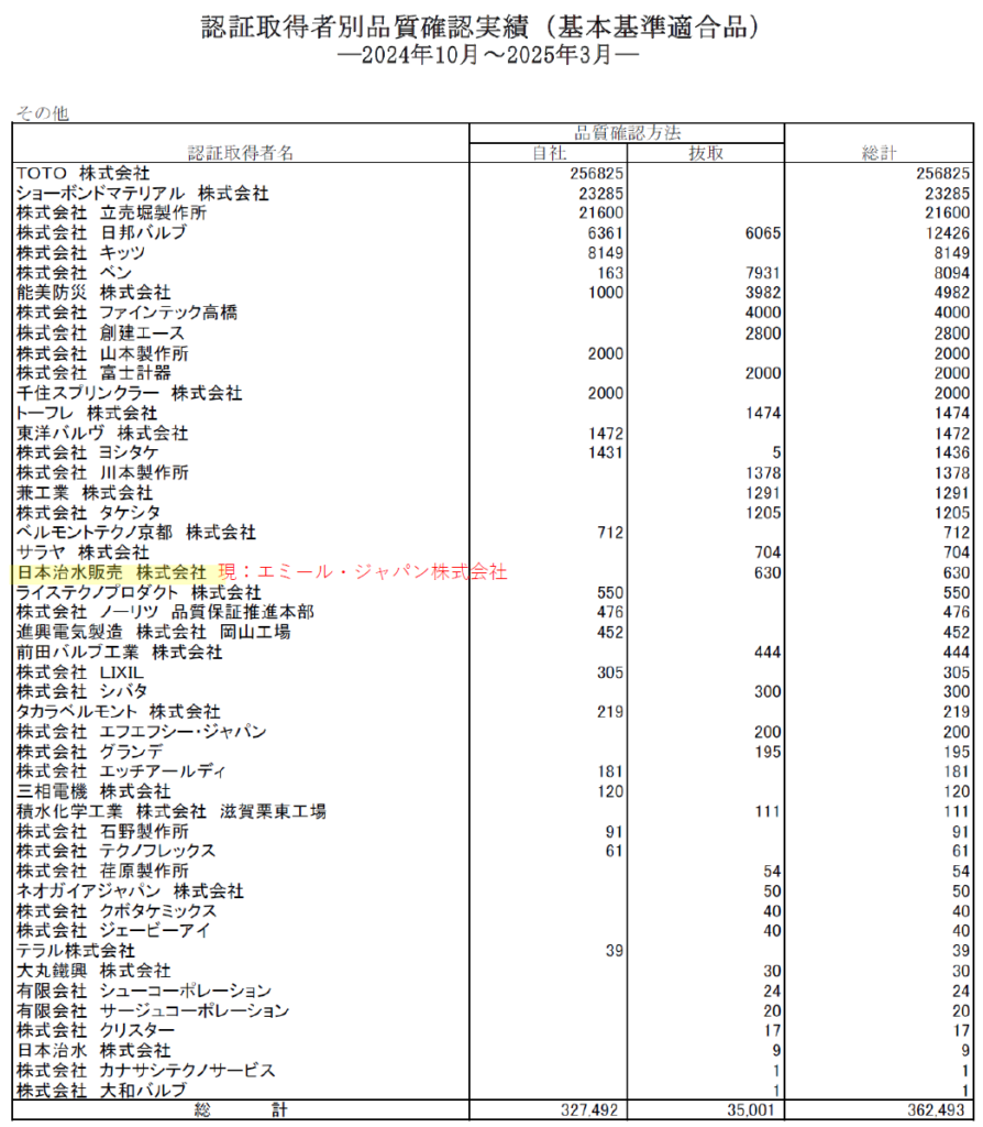 『認証取得者別品質確認実績(基本基準適合品)』が公開されました。